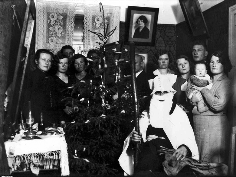 Jõulupuu jõuluvanaga talotarõn 1920. aastil. Pilt om peri Vana-Võromaa kultuurikua muusõumist