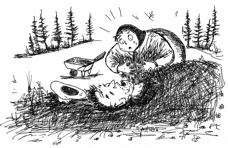 Miis tuigõrd’ haina mano, lei vikati haina ja nakas’ keerotama. Ma kül kiilse ja käskse perrä jättä, et muido või õnnõtus tulla – satas viil vikati pääle!