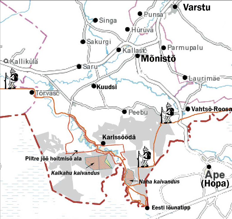 «Karissöödä ala esierälidse plussi omma jõõmaastigu ni Läti ja Eesti kaitsealadõ parõmb ütteköütmine,» selet’ tä. «Tulõvikun passis tuu kant näütüses musta toonõkurõ elopaigas.»