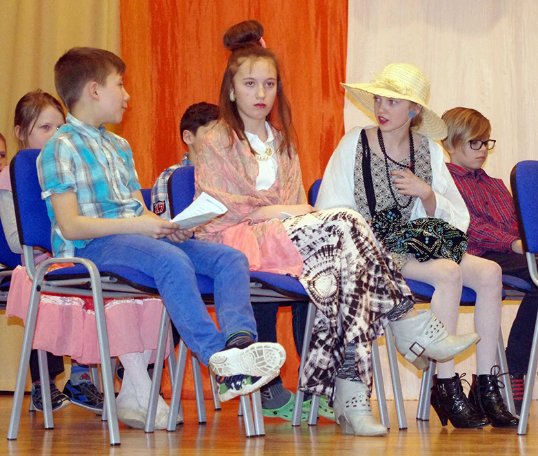 Marozovi Siiri (kübäräga bravuuri-daame) Harglõ kooli näütemängun «Tiatrin». Harju Ülle pilt