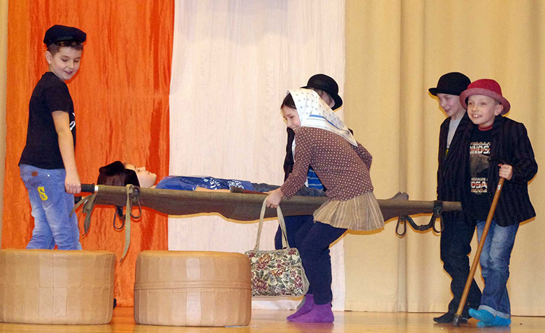 Bondartšuki Stefan (tarkusõkivvega kauplõja Ants Puiga kooli näütemängun «Tarkusõ kivi»). Harju Ülle pilt
