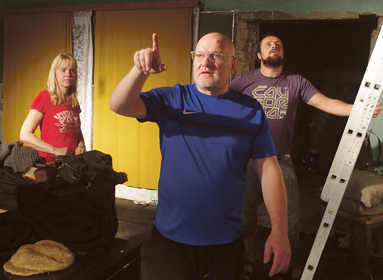 Proovin. Autor ja lavastaja Tagamõtsa Tarmo märk, midä ja kohe säädi, tedä kullõsõ näütlejä Käose Maive ja Trolla Agu. Rahmani Jani pilt