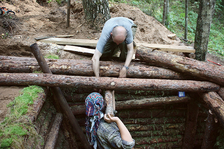 Minevä nätäl kaivõti punkri vallalõ ja saadi nukaposti paika. Riidi saadi saina üles, puulpäävä panti katus pääle ja katussõ pääle sammõl kah. Saina aeti kah liivaga kinni. «Periselt taa jäi meil lõpõtamada, aig sai otsa. Tulõ viil liiv ja vihmatõkõ katussõlõ panda,» selet’ Asi Arvi.