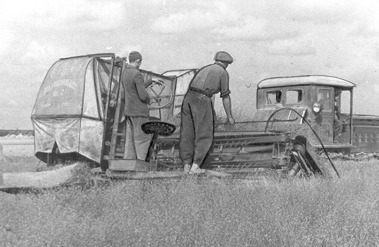Täämbäne pilt om tett Räpinä rajoonin. Orava MTJ (massina-traktori jaam) linakombain kakk linna Kuldvihu kolhoosi 4. põllundusbrigaadi linapõllu pääl. Pilt om tett 28. põimukuul 1955. Seo pilt sai lua avaldamisõs aolehen Sotsialistlik Räpina.