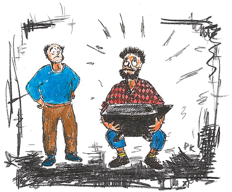 Tii pääl Heiki ütel’ Aadilõ, et näet, tan viimistlüse lakiruumi man välän lakivaadi 200 killo, nõstami mi naa lämmistüses puki pääle, muido vast alasi nõstmisõ aigu vinütämi naba är.