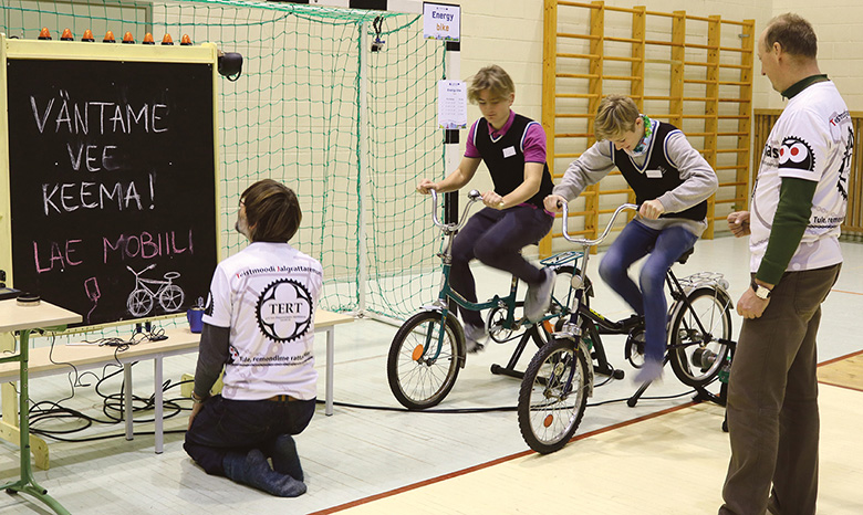 Rõugõ kooli poiskõsõ pruuvva, kas saava jalgratast vändäten vii kiimä. Rahmani Jani pilt