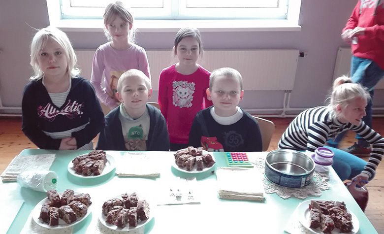 Väikumba latsõ teivä laadu jaos müügikraami koolih ütitselt. Edimädse klassi oppaja Ilvese Marje võtt’ iist «Kirivä pini» koogi tegemist. Latsõ seletivä tuud nii: «Lõigimi marmelaaditükke ja präänikit. Segäsimi mano võidu ja kondenspiimä ja oll’gi valmis imehää «Kirriv pini».» Laadu pääl müümisest saiva nä 15 eurot. «No om meil väega hää tunnõ, et pini ja kassi saava hääd süüki,» olli latsõ rõõmsa.