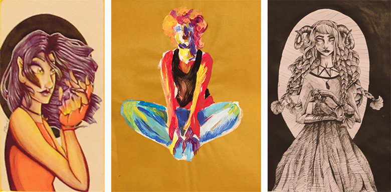 «Mul om koton kapin suur kast, kon hoia ummi joonistuisi joba väega varatsõst latsõiäst. Seo om suur osa must. Valisi uma lemmikumba pildi vällä ja tõi nuu siiä. Tan om pall’o kunstikoolin tettüid töid, a ka visandiid, hindä algatusõga tettüid maalõ ja joonistuisi,» seletäs Metsa Loona.