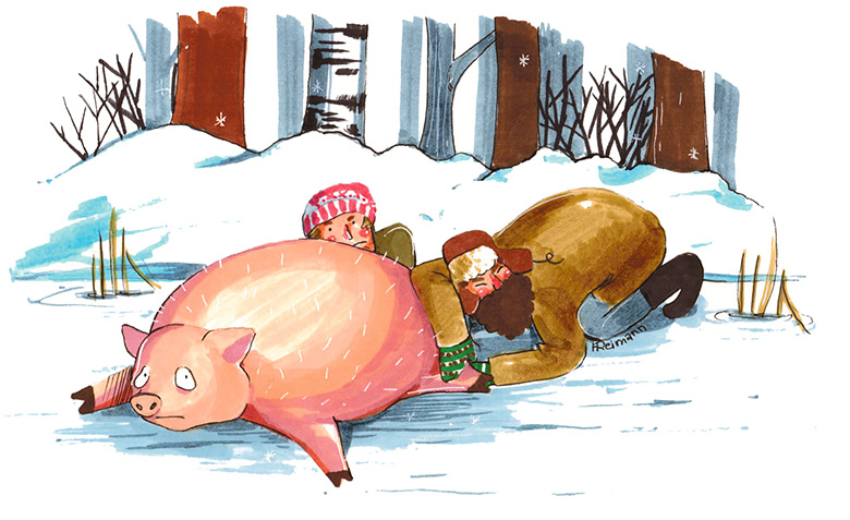 Mõtsa seen oll’ väiku oja. Tuu oll’ ilustõ kinni külmänü, a sääl lummõ pääl es olõ. Nigu tsiga ijä pääle sai, oll’ tä kõtulõ. Kõik neli jalga külle pääl lajan. Mul oll’ hirm, et nüüd kül murdsõ kondi är. A tä oll’ vakka, es liiguta ka innäst.