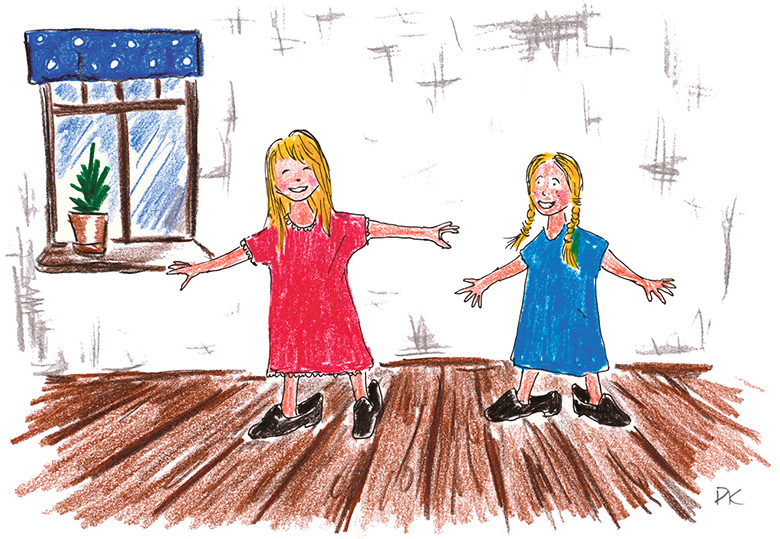 Seokõrd ollimi nal’a ja naaruga üle tarõ tsohkatadõn hinnäst aknõ mano pressnü. Ja mis mi näimi: tiid pite tull’ illos tsäron pääga sinidse kleidiga tütrik. Nii illos, et võisõ kogoni printsess olla… Jä käänd’ õkva mi värtest sisse! Tull’ aknõ ala ja tunnist’ tükk aigu läbi klaasi kängi riiulidõ pääl. Ütel’ sis, et tull’ ummilõ kängile perrä, näüdäs’ käega: näet, noilõ verevile. Nuu olli rihmuga kängä. Teimi aknõ valla ja annimi tütrigulõ kängä. Tä pand’ nä säälsaman hoovi pääl jalga, olli parra. Sis naarat’ meile lahkõlõ ja astõ värtest vällä. Lännü tä oll’gi. Mi sõsaraga ollimi õnnõligu.