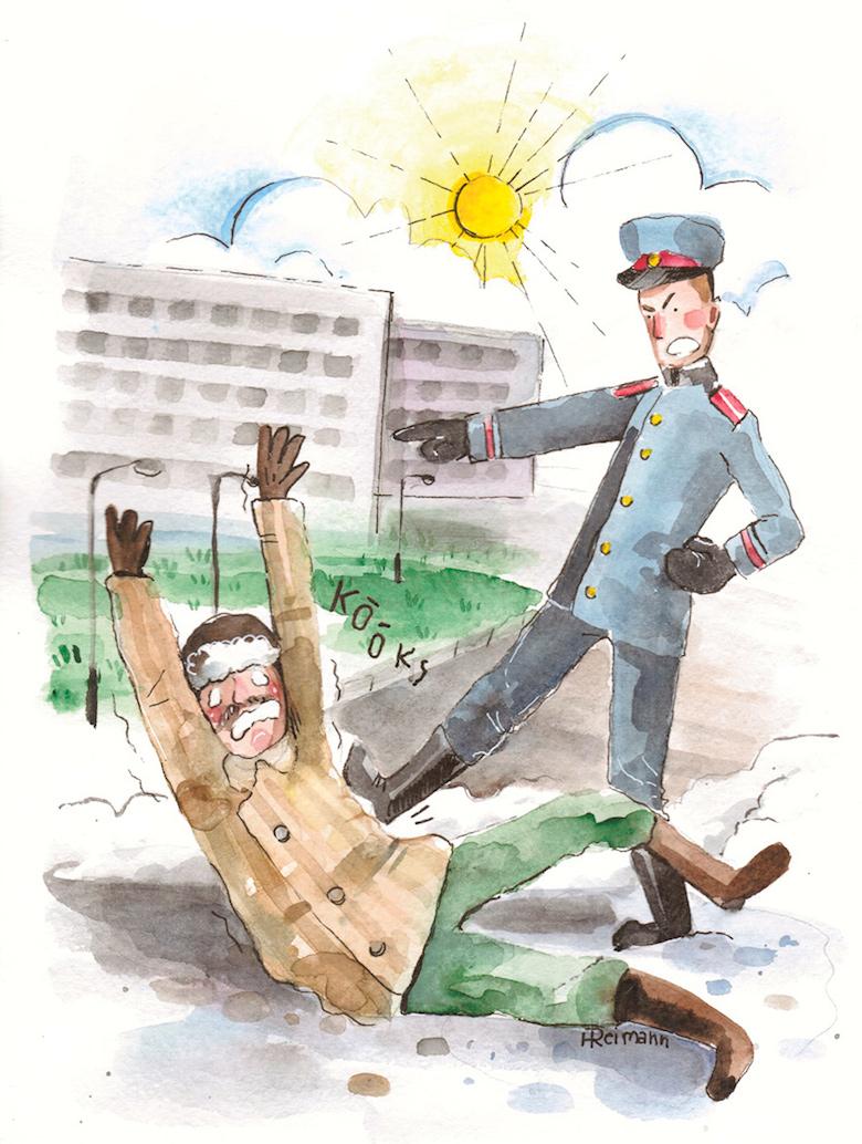 Edimäne, kes manu sai, oll’ miilits. Virut’ jalagõ Karlalõ ribikontõ piten ja kärät’: