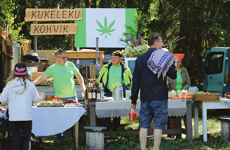 Laadu kõrraldaja Täpsi Aivar uma müügitelgi all kauplõman. Rahmani Jani pilt