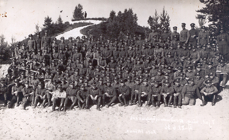 Täämbädse pildi pääl omma säitsmendä rügemendi soldani ja ohvitseri üten reservväelaisiga lõunalaagrin kõrdusoppusõl 4.–21. piimäkuul 1936. Pildi om tennü tunnõt sõaväepiltnik, illatsõmb Võro liina fotograaf Niilusõ Jaan. Säändside postkaartõga saadi soldani kodotsilõ sõnomiid.