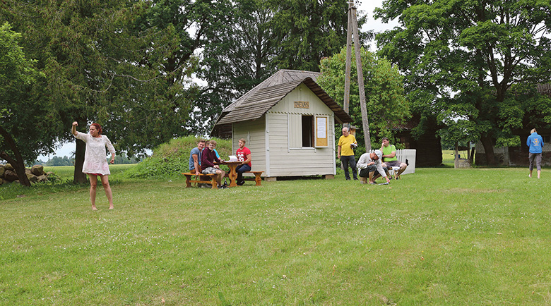 Pruuv käü. Lavastaja Jäägeri Merle (kural) kargas vahepääl pistü ja näütäs osaliidsile ette, kuimuudu midägi tetä tulõ. Rahmani Jani pilt.