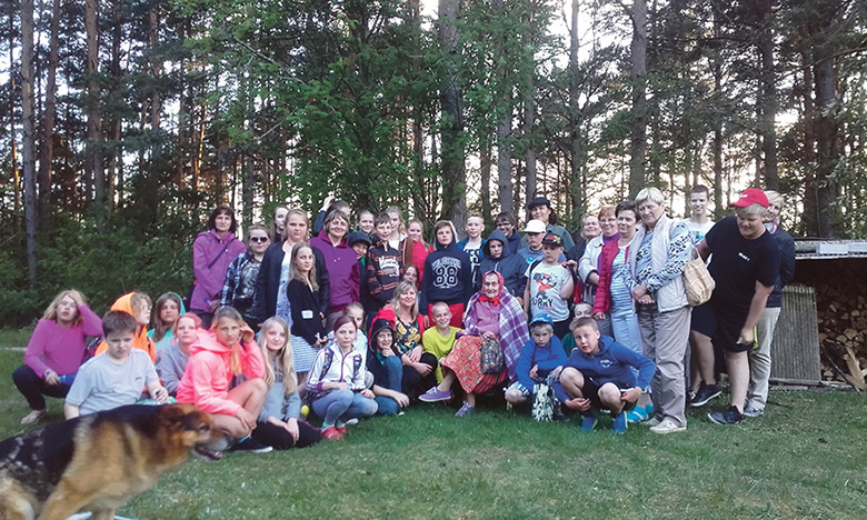 Võromaa koolilatsi ja oppajidõ ütispilt Kihnu Virvega. Pilt Orava kooli kogost