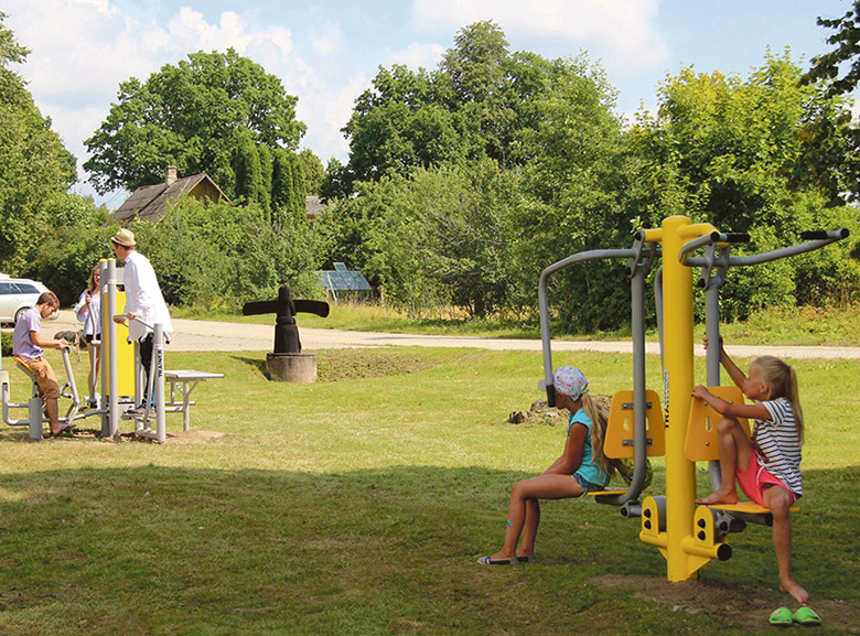 A kõgõ esierälidsemb oll’ õks väläjõusaali vallategemine. Kesk Leevi küllä om no maa külge pant mitu massinat, minka saa tetä jõuhar’otuisi. Neo massina olõ-i mõtõld õnnõ latsilõ, ka suurõ inemise võiva sääl värskin õhun ummi lihassit triini.