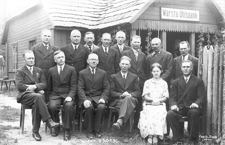 Täämbädse pildi om tennü 5. hainakuul 1936 Zopa Gustav. Pildi pääl om Varstu ütispanga nõvvokogo ja juhatus.