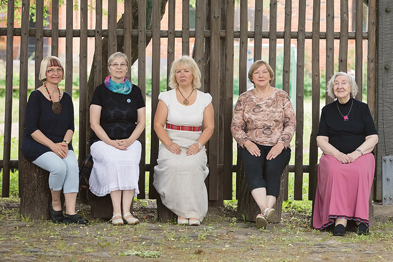 Jutustaja Laanpere Helle, Jansonsi Silvi, Tootsi Ruth, Toomiku Siiri ja Kalme Helju istva Kreutzwaldi muusõumi aian pakkõ pääl. Rõõmu Grethe pilt