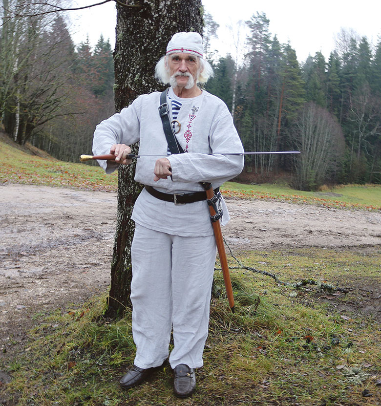 Haanimiihhi nõvvukua vanõmb Hollo Agu vahtsõ mõõgaga. Rahmani Jani pilt