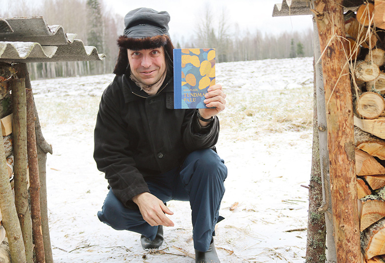 Kokkosäädjä Sommeri Lauri näütäs katõ puuriida vaihõl vahtsõt Jaigi Juhani raamatut. Rahmani Jani pilt