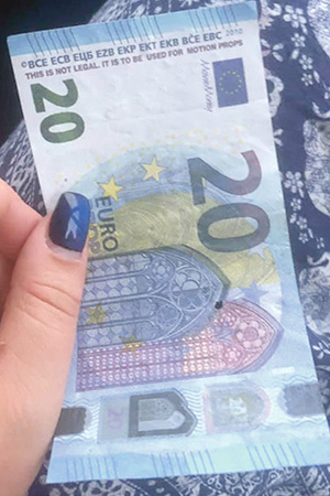 Nii juhtu päält jaanipäivä Sulbi kohvigu pidäjä Noorsalu Indrekuga. Ku tä läts’ jaanipidol teenitüt rahha panka viimä, es võta massin ütte 20eurost rahatähte vasta. Ligembält kaiõn oll’ nätä, et raha pääle om inglüse keelen trükitü, et seo olõ-i peris raha. Tuuperäst säänest rahha peris võlssrahas ei peetä, kutsutas mängorahas. Miä tähendäs, et ka säändse rahaga masjit karistõdas kergembäle, ku võlssraha tegijit. A et papõr krabisõs sammamuudu nigu perisrahal, sis hämärän ei pruugi raha vastavõtja taad asja tähele panda.