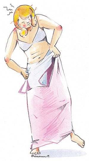 Ku ma viil nuur olli, lasi naabrinaasõl umas 25 aasta sünnüpääväs ilosa kleidi ummõlda. Iks keskkotust piten, nigu peenükesele näüdsikulõ kohanõ. Umblõja ütel’, et tä jätt pahepoolõ pääle ummõlusvaru: ku ma lää paksõmbas, saa perrä laskõ. Ma sis ütli, et olõ-i vaia, ma ei lää ilmangi paksõmbas. A saaki es ma tuud kleiti kuigi kavva kanda, nii lää es inämb sälgä. Sis mõtli, ku lihtsä meelega või iks üts nuur inemine olla.