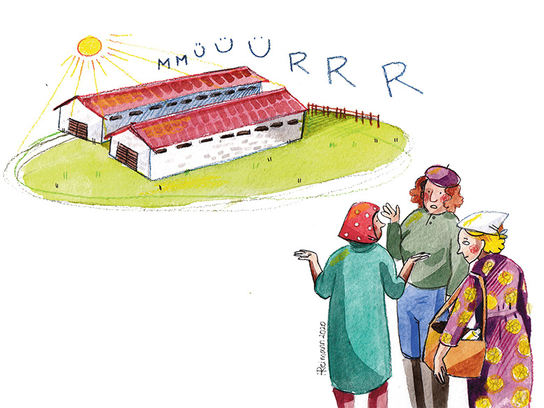 No muidogi, lehmä olliva jo harinu, õt näid õigõl aol nüssetäs. Inemisele võit õks är kõnõlda, õt läät tunn aigu ildamp tüüle, a kuis sa eläjäle selgest tiit, õt tä är kannatama piät…