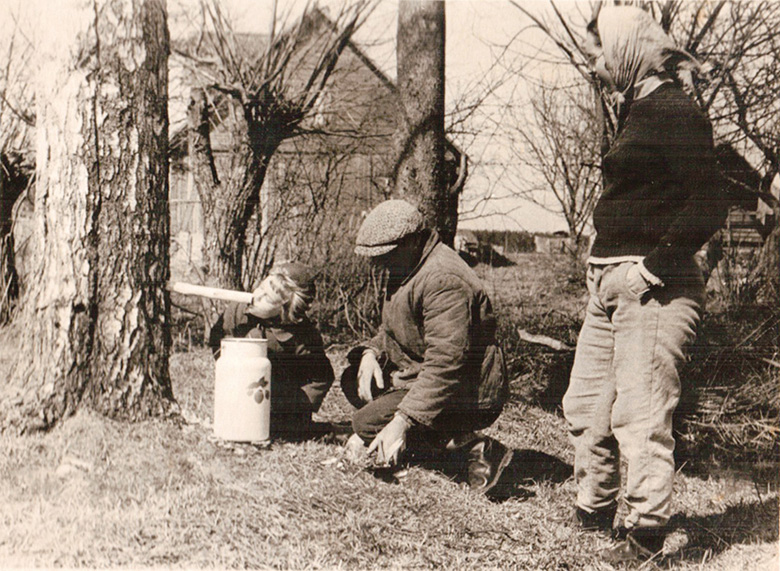 Kolm põlvkunda kõivo tikkaman ja mahla maitsman. Pilt Urmi Aili kogost