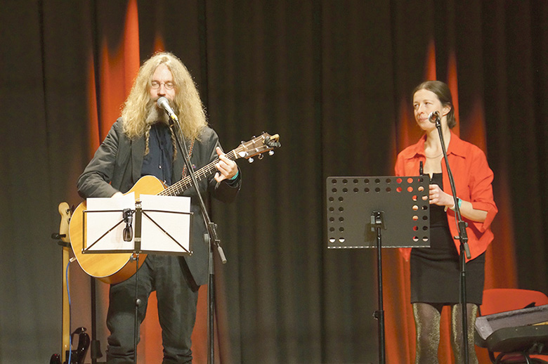 Ilvesse Aapo ja Varblasõ Marju minevä sügüse Moosten Uma Laulu konkursil Aapo laulõ ette kandman. Urbasõ Ülle pilt