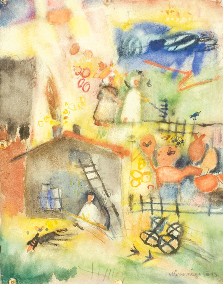 Kompositsioon redeliga. 1923. Akvarell. Pärsimäe Karli pilt Eesti Kunstimuusõumist