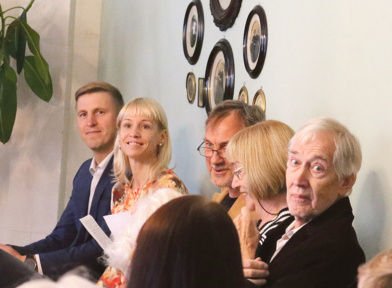 Kangro preemiä anti kätte 17. süküskuul Võrol Kreutzwaldi muusõumin. Pildi pääl omma Tootsi Tiit ja Valsi Kristi Võromaa arõnduskeskusõst, kirändüstiidläne Kronbergi Janika ja avvuhinna saaja Kaplinski Jaan uma kiränikust provva Toometi Tiiaga. Rahmani Jani pilt.