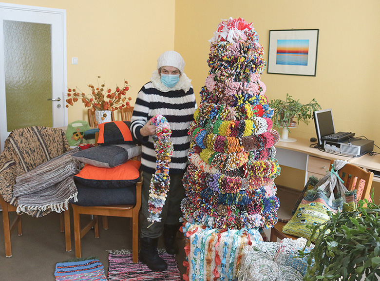 Võro pensionääre pääväkeskusõ aolehe lugõmisõ tarõn om pistü säetü esieräline jõulupuu. Tollõ om käsitüütegijä Riitsaarõ Lainõ kokko käändnü niidi otsa aetuisist kompvegipaprist. «Tan om 21 meetrit hussi, tuujaos om 21 aastat näputüüd tettü. Nüüd om tä saanu hindäle tähtsä jõulupuuammõdi, muidu olõs tä olnu õnnõ unikun kommipaprõhuss.»