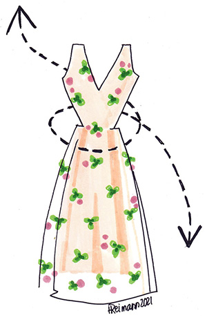 Kuvvõnda kleidi ummõl’ mullõ Tarton naabrinaanõ Meeri ja tuu oll’ mul viil ildaaigu alalõ. Olli kleidi umblõmisõ aigu nuur ja siuhkõ. Ku umblõja tahtsõ ummõluisi vaihõlõ perrälaskmisõs ruumi jättä, ütli, et ei olõ vaia. Ma ei lää kunagi paksos ja käü seo kleidiga viil kavva. Prõlla tuud miilde tulõtõn aja mu rumalus minno naarma.