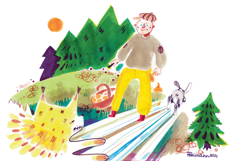 Mullõ miildüs kikkasiini ja marju kor’ada. Tüü käü värsken õhun, tsirgu laulva ja mõni­kõrd trehvät kokku mõnõ mõtseläjägõ. Lisas teeni viil pinsile vähäkese manu.