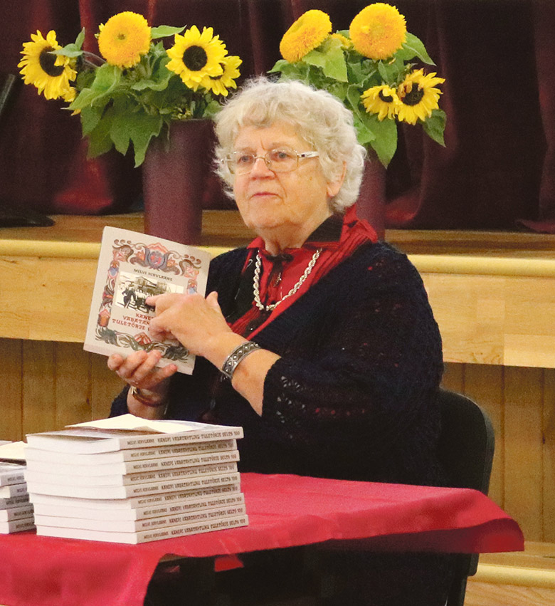 Hirvlaane Milvi uma vahtsõ raamadu näütämisel Kanepi seldsimajan timahava 20. süküskuul. Rahmani Jani pilt