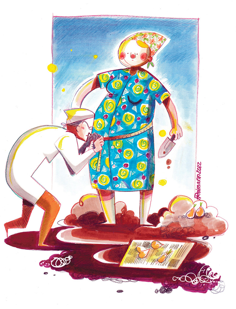 Taad kõnõl’ Salmõ esi mõni päiv ildampa mi puul. Tä ütel’, et väega, väega häpe nakas’. Naanõ oll’ karanu sünnütüslavva päält maaha, haardnu maimukõsõ rõiva kandli ala ja tormanu ussõst vällä. Salmõ kahits’ viil, et mu imä juttu kuulda es võta ja Võrolõ naisitohtri mano es lää.