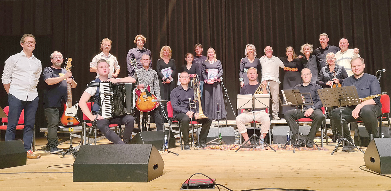 Folgikuan astsõ üles ansambli, kon olli säändse pilli: klarnet, saksofon, trompet, tromboon, viiol, kitarr, basskitarr ja trummi. Mitmõ helü pääl laulõ laulsõ vokaalansambli Miinus Seitse. Muusikit ja lauljit dirigiirse Aimla Siim. Kontsõrdil kanti ette ütessä vahtsõt laulu, noist katõssa võrokeelist ja üts, miilitside laul, vinne-eesti-võro segäkeelen.
