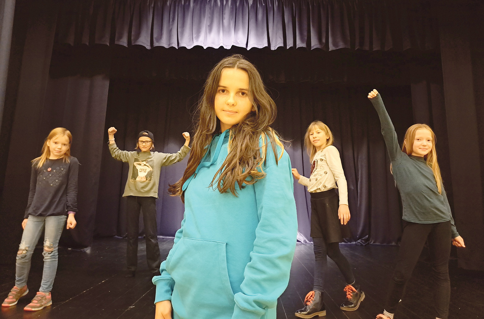 Laagri kõrraldaja Meri Emma Sofia (iin) uma rühmäga tiatriülesandit tegemän. Rahmani Elo pilt