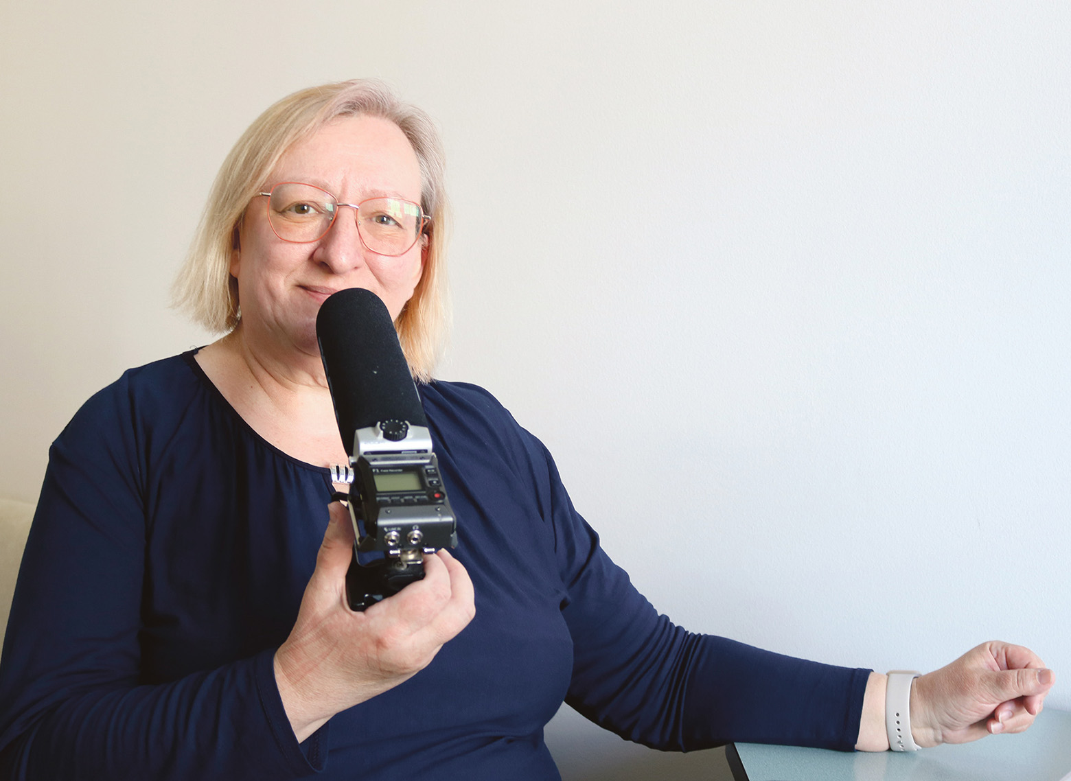 Raadiojaama Retro FM Võru võrokeelitside uudissidõ kokkosäädjä Uguri Kadri. Rahmani Jani pilt