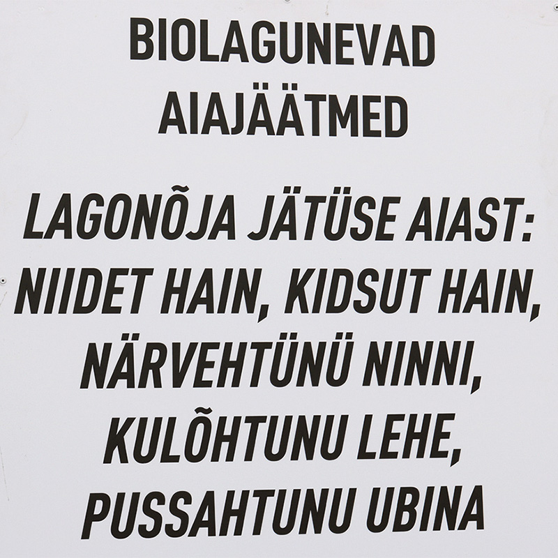 Nii avitaski kõgõ inämb prügü hinda ja luudust hoita sortminõ. Suur jago inemiisist om tuust arvo saanu. Näütüses naati minevä aasta lõpust Võro liinan eräle korjama söögi- ja muid biolagonõjit jääke. Noid oll’ inne hariligu prügü seen 20 protsõnti. «Meil om joba 15 protsõnti poolõ aastaga käen. Inemise omma peris kõrraligu, piät kitmä,» seletäs Lüütsepp. Parhilla saadõtas söögi- ja muu biojäägi Tartolõ kompostmistõ, a tulõvigun plaanitas näid naada vidämä Tal’nalõ biogaasi-tehassõlõ.