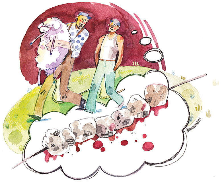 «Nüüd tahassi šašlõkki!» ütel’ Kolka suud matsutadõn.