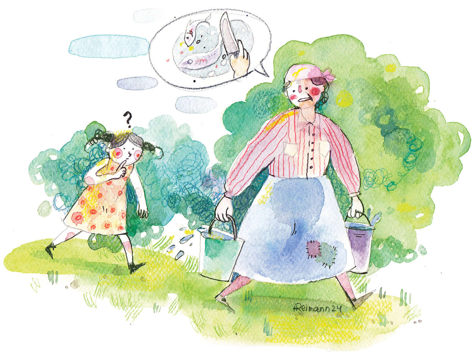 «Tütrik om meil vihanõ, minka tedä meelütä? Kirivä kitsõ piimäga, valgõ vask’a jalaga, mädänüide munnõga.» Es miildü sukugi, ku imä uma laulu vallalõ lei, ja ku viil tõisi inemiisi kuuldõn. Tuu viimäne lõpp es miildü mullõ sukugi. Tiidse väega häste, määndse haisuga mädämuna om. Ku imä midägi toimõnd’ ja ku lats’kõnõ küsse: «Mis tiit?», oll’ imä vastus «Heeringit puhasta» vai «Kotti mõsõ». Tuu oll’ nii imelik, mille imä niimuudu ütel’. Nüüt ma saa kül arru, et lats’kõsõ jo näi, midä imä tekk’, a iks oll’ vaia küssü. Olõ esi kah pruuvnu umilõ latsõlatsilõ nii üteldä. Kaesõ mu ku mõnõ ullikõsõ pääle. Sõs tulõ seletä, et vanastõ nii üteldi.