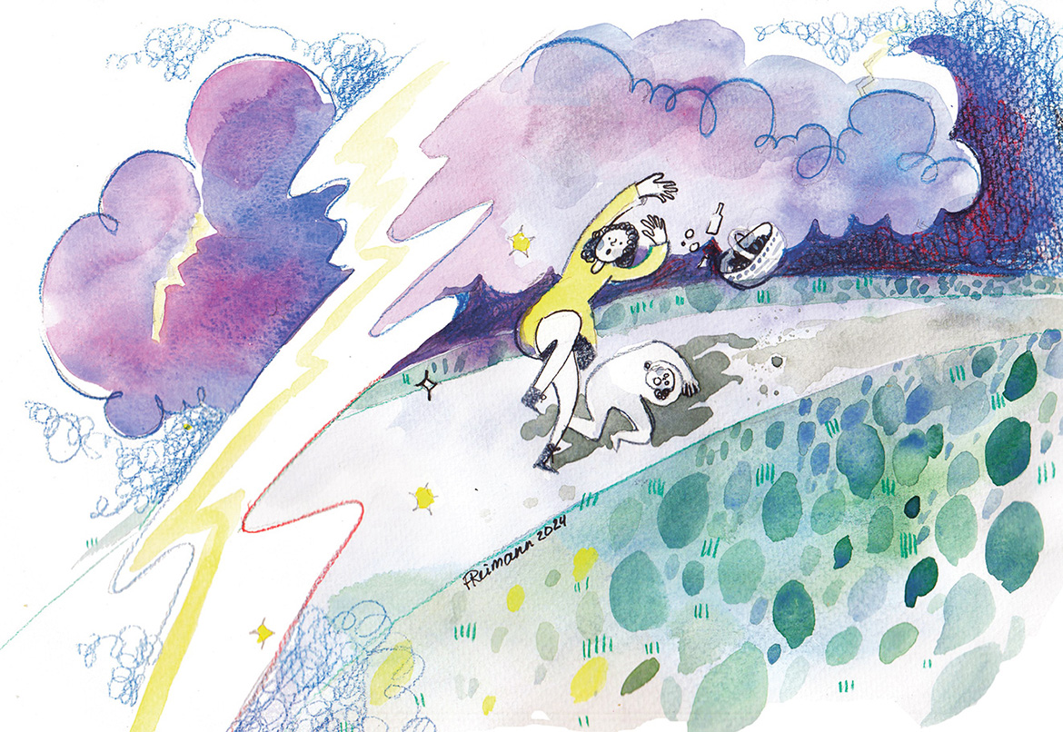 Peime torõdalt sünnüpäivä. Kesküüse nõstime kombõperi sünnüpäävälatsõ üles, seime krõnglit ja jõime tervüsenapsu. Kaime külh, et jälki sääd üts piksepilv hinnäst väega lähkohe. Naksime sis kolmõkõistõ naabrinaasõga rutustõ kodo tulõma. Leenu püürse tiiharon uma kodo poolõ, timä elli säälsamah lähküh. Tä kutsõ külh hindä poolõ, a imä ütel’, et läämi iks edesi kodo poolõ, vast jõvvami inne kodo, ku pilv peris üles tulõ. Välku pesse nii, et kõik olle ümbretsõõri valgõ, ja mürrin tulle kah kõrrast lähkümbäle ja läts’ kõvõmbas.