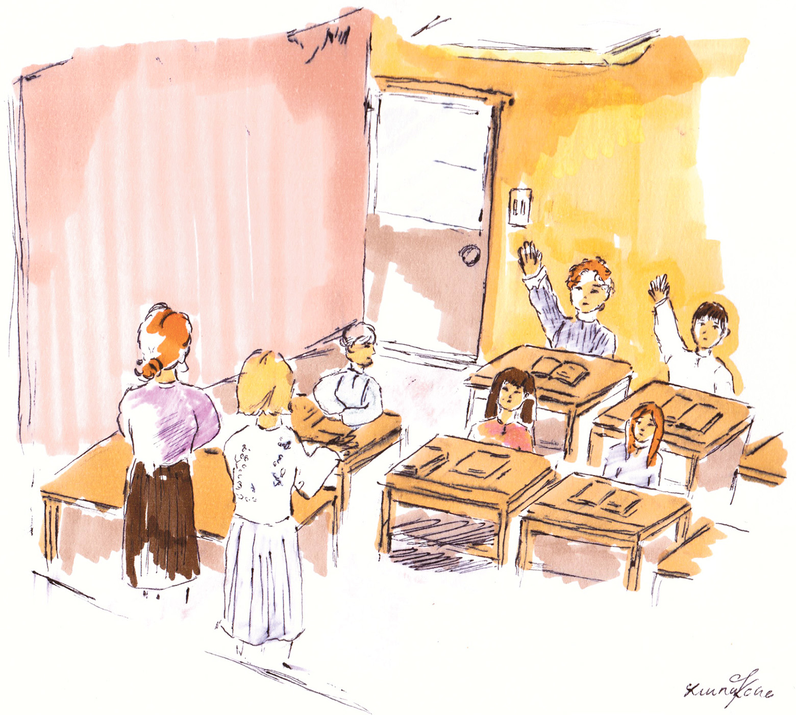 Läts’ mõni minot müüdä ja oppaja tulle mi noorõ direktriga tagasi. Tuu olle inne oppaja olnu. Tä pandsõ tulõ palama ja küsse õkva: «Kes kistut’ tulõ iist ja takast är, kes vilistivä?»
