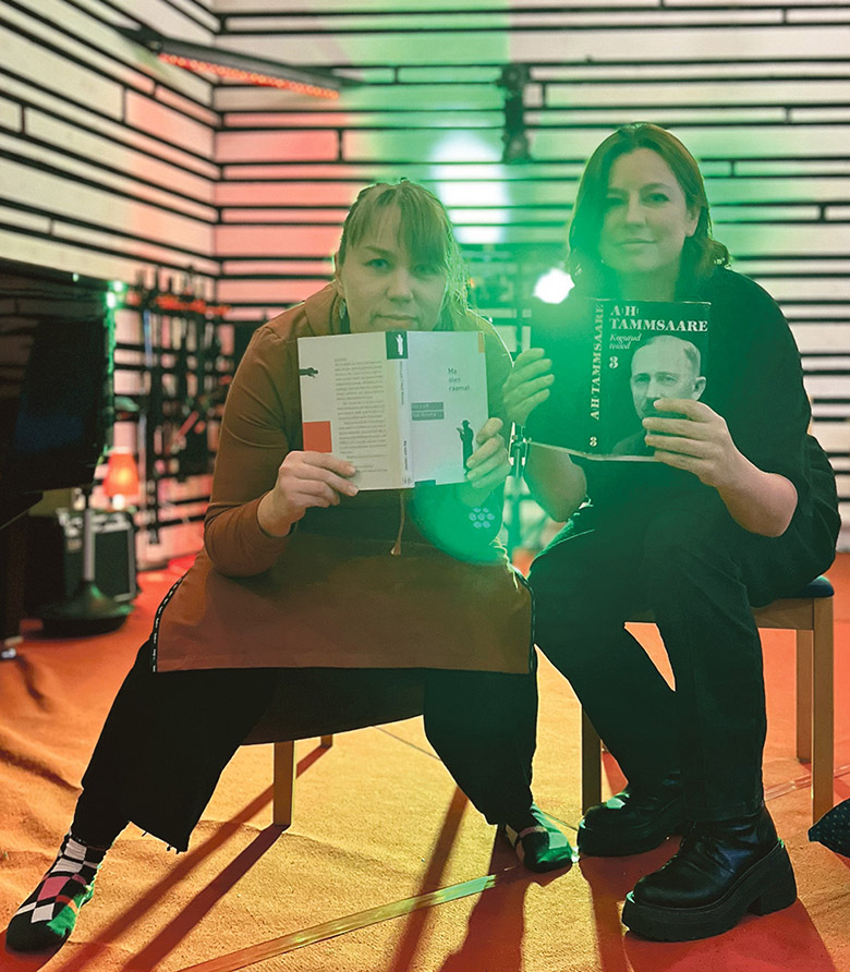 Muusigu Kalkuna Mari ja Fausti Maria seo aasta edimäidsil päivil Tarton Ö Stuudion laulu ülesvõtmisõ vahepääl raamatidõga poosõtaman.