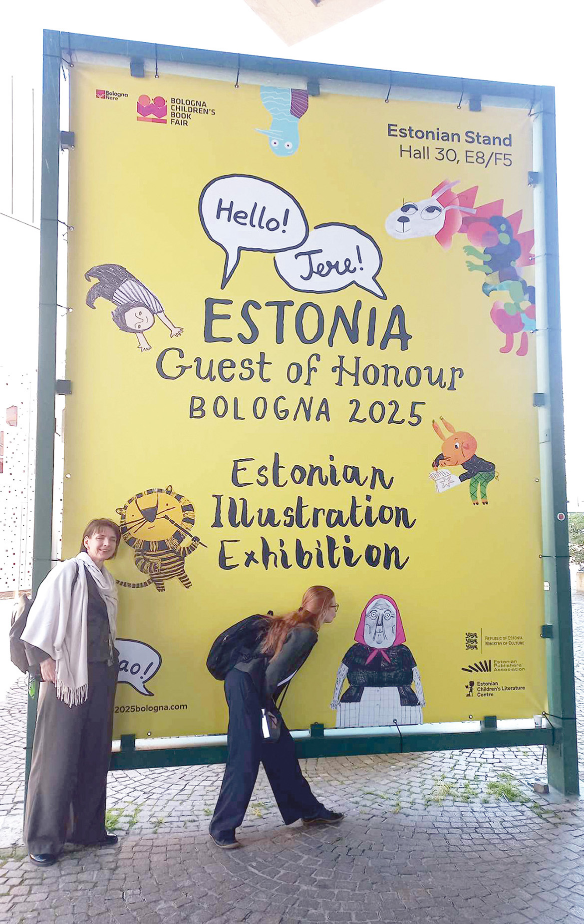 Jõudsõmi kunstnik Pikkovi Annega messile ja õkvalt pääsissekäügi man trehvssimi Eesti plakati pääl tegeläisi hindä raamatist. Anne sais hindä luud tiigri kõrval Loogi Kairi raamatust ja ma kae tõtt Platsi Marja-Liisa luud memmega mu luukere Juhani raamatust. Sillaste Kertu pilt
