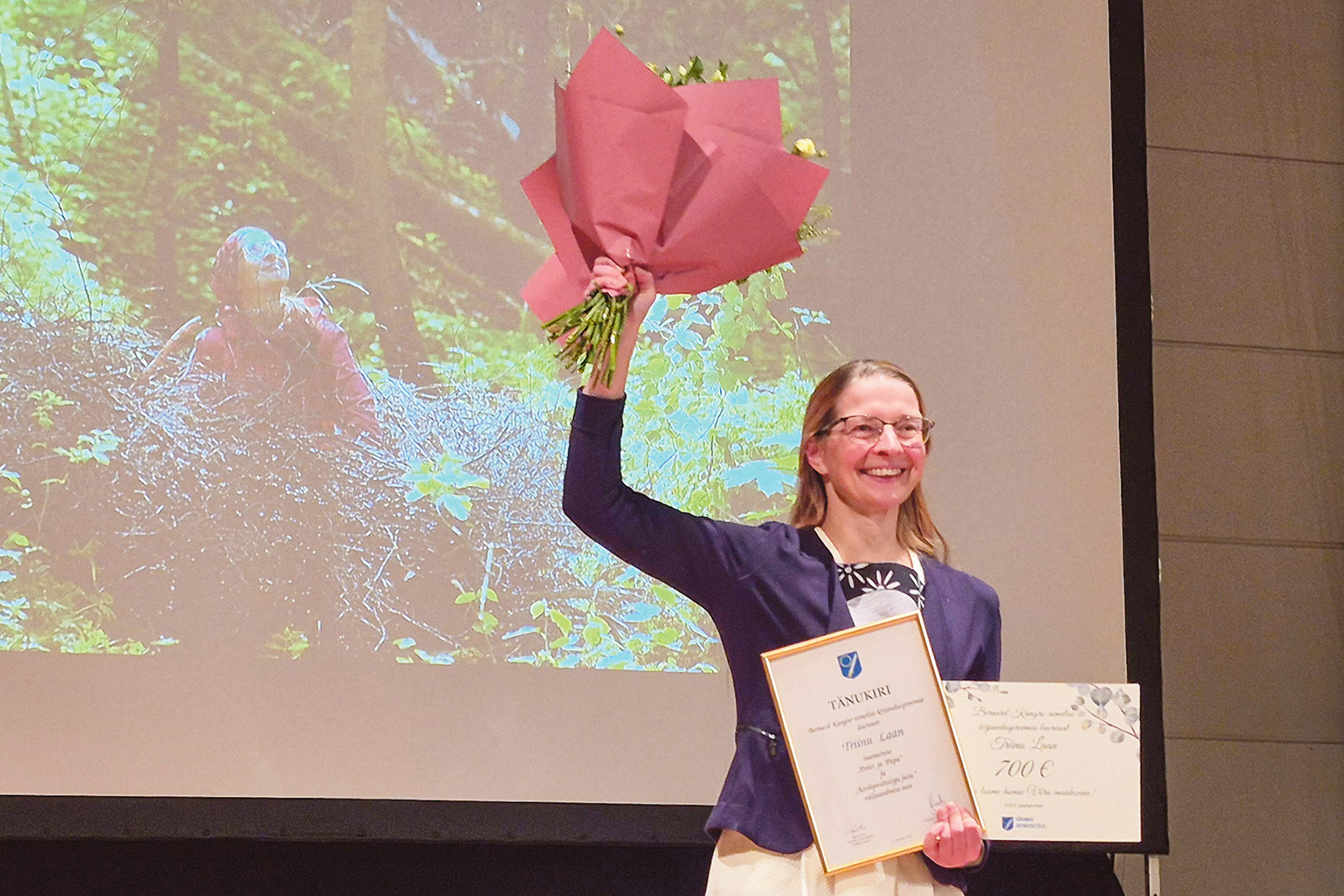 Laanõ Triinu timahavast Kangro-preemiät vasta võtman. Rahmani Elo pilt