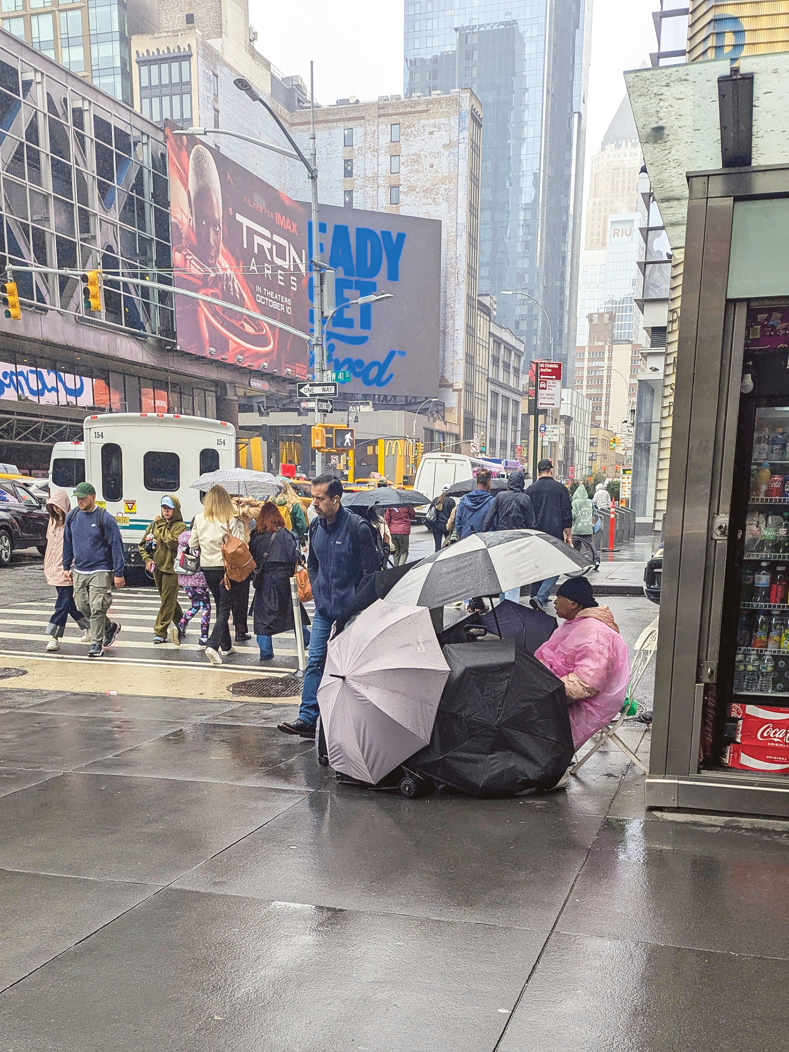 Kodolda vihmavar’otädi Times Square lähkün. Kõndsõmi timäst mitmõl kõrral müüdä ja sääl timä egä kõrd magasi, sei ja elli. Vihmasao peräst om tä kõik uma vihmavar’o-arsõnali tüühü pandnu. Tõemäe Maive pilt