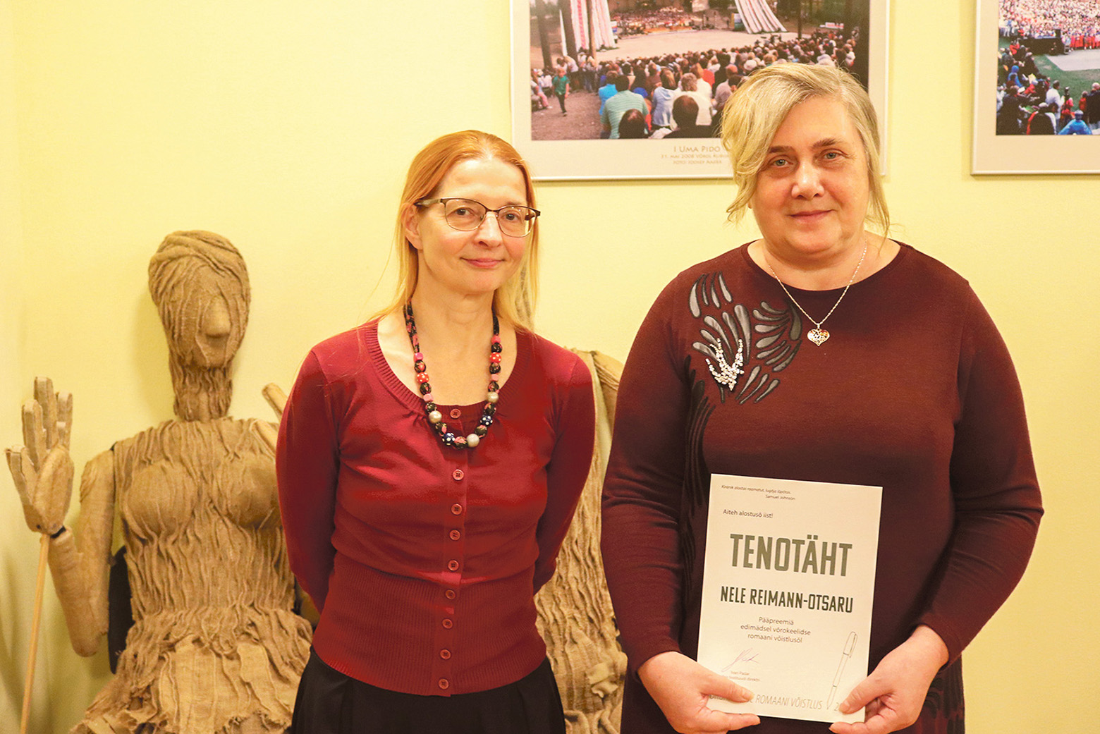 Võrokiilse romaani võistlusõ võidutöie autori Laanõ Triinu ja Reimanni-Otsaru Nele. Rahmani Jani pilt