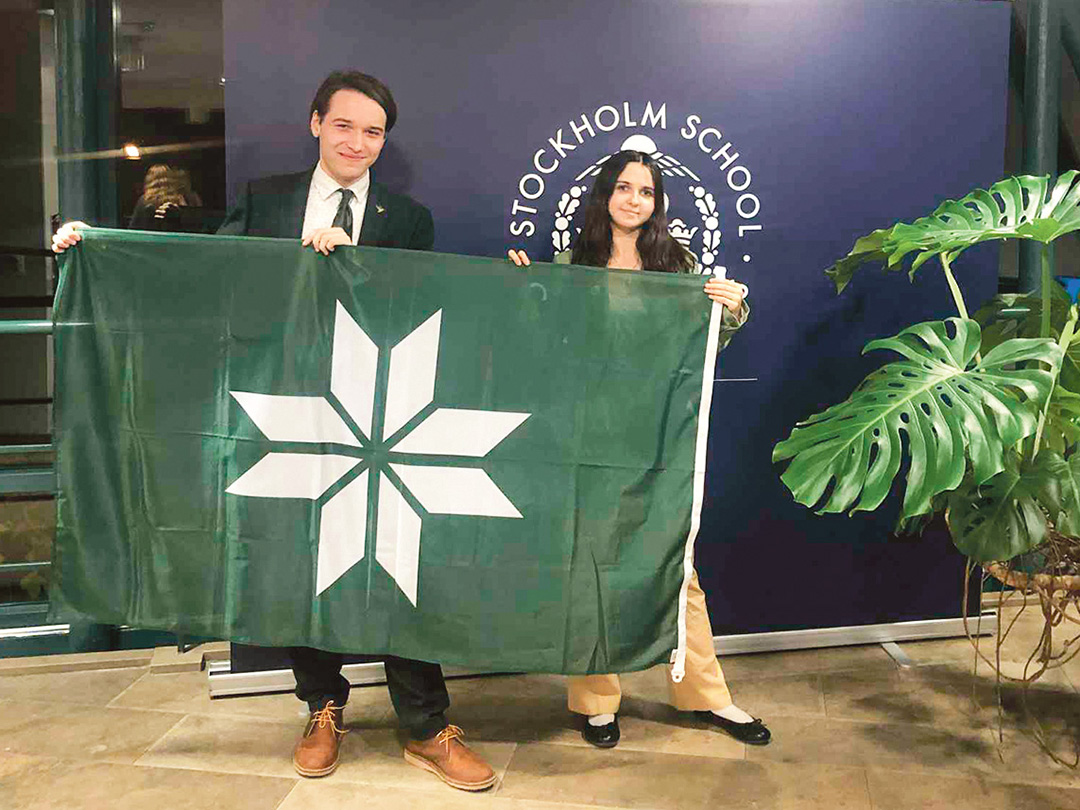 Võro kiilt kõnõlõja noorõ Borga Breca ja Meri Emma Sofia käve Riian Pro-ami vaidlõmisõvõistlusõl (väitlusturniir).